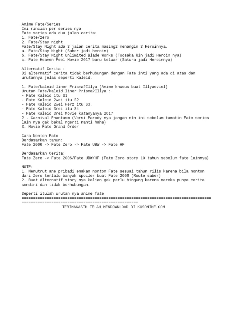 Bagaimana Urutan Yang Benar Dalam Menonton Anime Fate Quora